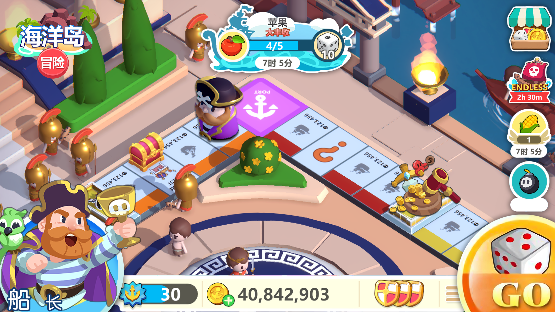游戏以掷骰子前进为核心机制,步数决定探索范围,走到不同格子会触发海盗、宝箱、岛屿、贸易等随机事件,整体节奏偏休闲,不用长时间在线也能推进。操作以单手点击为主,掷骰子、交互、打开菜单、确认选择都很顺手,没有复杂连招,通勤或碎片时间都能玩。生存部分需要留意淡水与食物,资源不足会影响状态,雨天容易出现负面效果,晴天则利于资源回复,需要简单规划路线与收集优先级。地图包含多种环境区域,每个区域的事件与资源略有区别,探索感比较强,不会长时间重复同一内容。联机支持多人实时游玩,可合作建设也可竞技互动,组队分工后效率更高,单人玩也不影响主线推进。